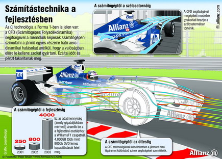 Nem is lehet ktsges, hogy a CFD igen fontos szerepet tlt be a Forma 1-et rint fejlesztsi munkk folyamn. Nhny vvel korbban pldul, amikor a mrnkk megprbltk megtallni azt az optimlis kialakts lgterel szrnyat, amellyel az adott versenyen szerettek volna elindulni, ht bizony nem volt egyszer a helyzetk. El kellett ksztenik szmos vltozatot azokbl a szrnyakbl, s a szlcsatornban szerzett adatok ill. tapasztalatok alapjn akr tz klnbz kialakts elembl kellett kivlasztaniuk azt, amelyet a legmegfelelbbnek tltk meg. Ezltal gyakorlatilag a fennmarad kilenc szrny ellltsra fordtott id s pnz veszendbe ment. Napjainkban viszont – ksznheten a CFD-nek – azokat a szrnyakat mr nem kell elre elkszteni.